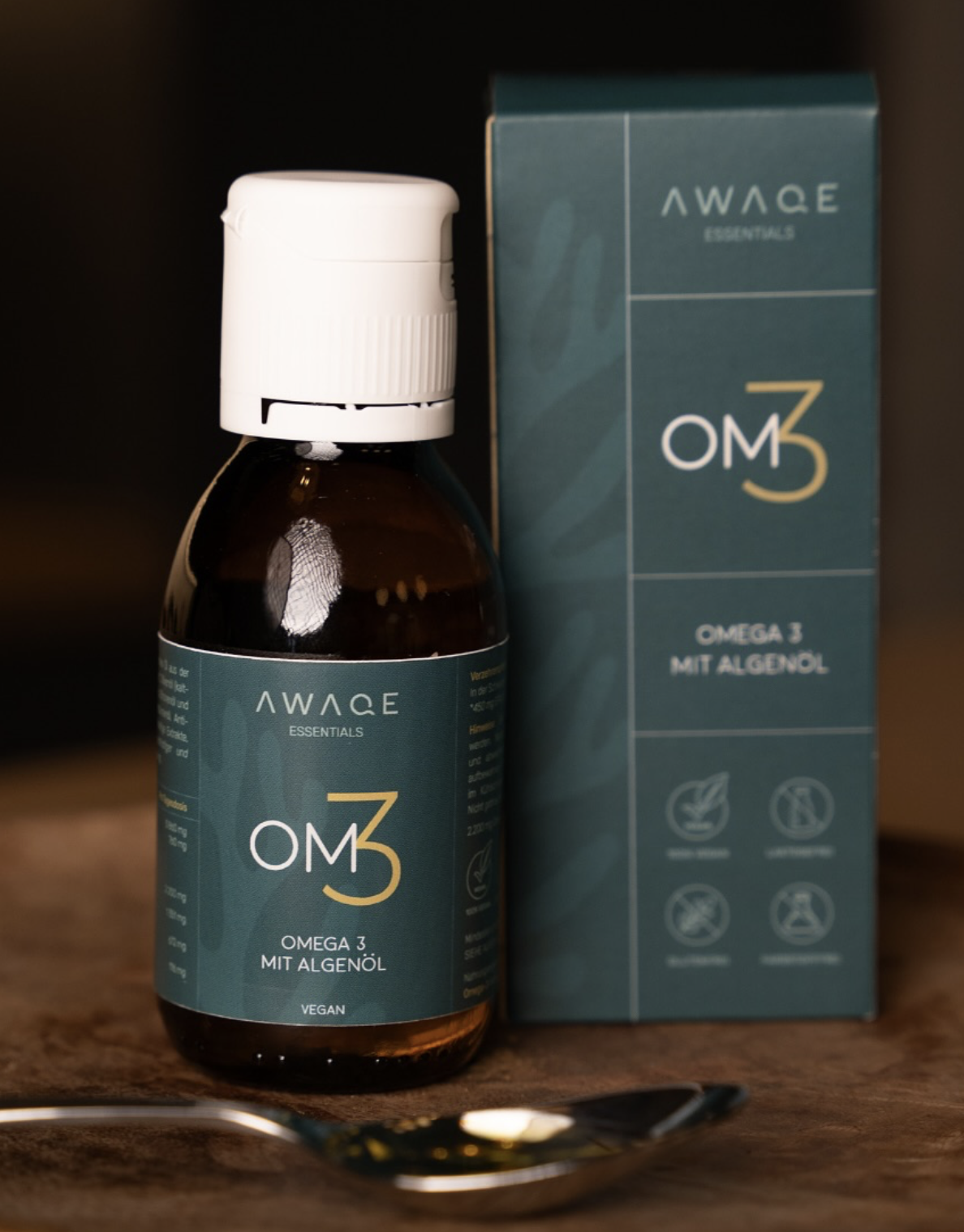 OM3 ist ein Nahrungsergänzungsmittel mit Omega-3-Fettsäuren aus veganem Algenöl. Da diese Fettsäuren für unseren Körper essentiell sind, müssen sie über die Nahrung zugeführt werden. Omega-3-Fettsäuren haben eine positive Wirkung auf die Herzfunktion, die Sehkraft und die Gehirnfunktion.